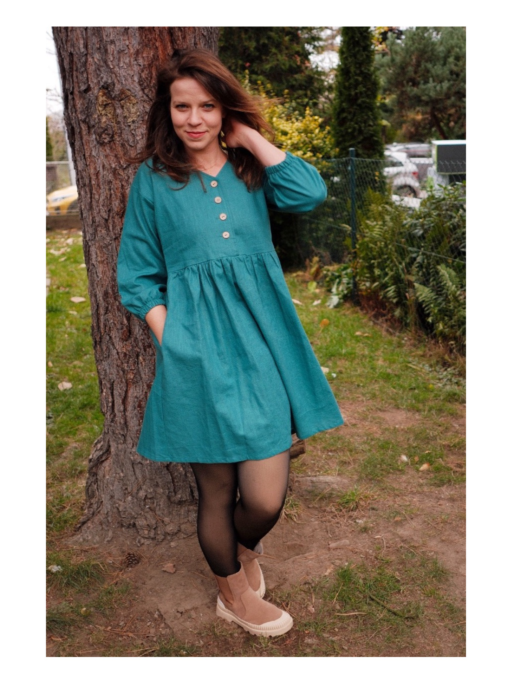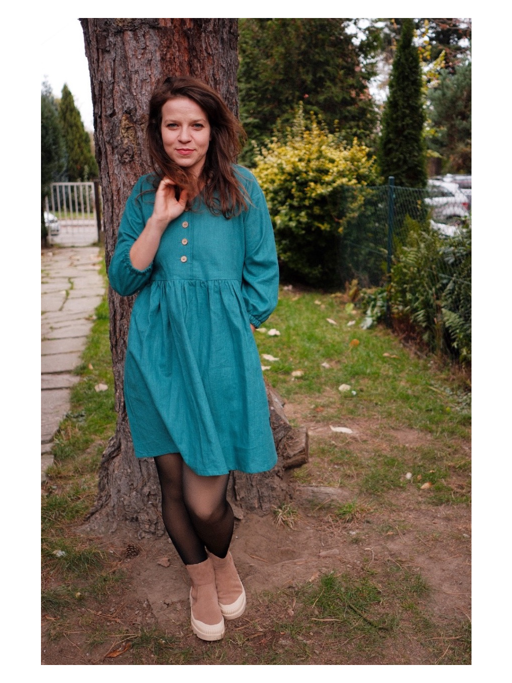 Lněné šaty Eleanor v harmonii s přírodou. Jejich béžový odstín podtrhuje jejich nadčasovost a snadnou kombinovatelnost s dalším oblečením a doplňky.