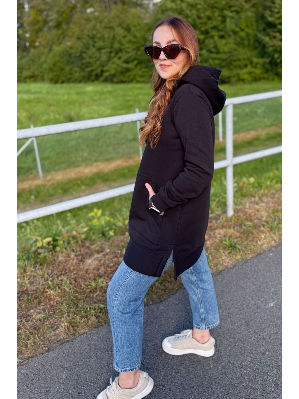 Mikina Ela je stylová, hřejivá a skvěle se hodí do chladnějších dnů. Šijeme ji z kvalitní hrubší teplákoviny, která vás udrží v teple a pohodlí. Praktické rozparky na bocích, prostorná klokaní kapsa a kapuce dodávají mikině funkčnost i moderní vzhled. Pohodlný střih a příjemný materiál zajistí komfort během celého dne.