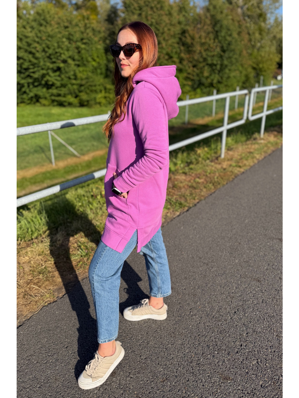 Mikina Ela je stylová, hřejivá a skvěle se hodí do chladnějších dnů. Šijeme ji z kvalitní hrubší teplákoviny, která vás udrží v teple a pohodlí. Praktické rozparky na bocích, prostorná klokaní kapsa a kapuce dodávají mikině funkčnost i moderní vzhled. Pohodlný střih a příjemný materiál zajistí komfort během celého dne.