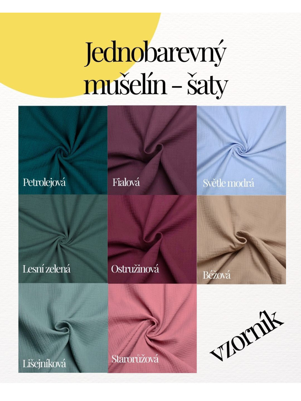 Barvu šatů můžete ze všech barev ze vzorníků - stačí připsat do poznámky.