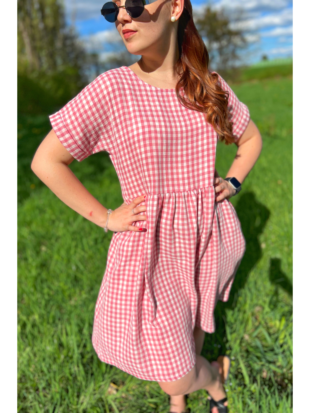 Pásek není automatickou součástí šatů, ale je možné jej k šatům ušít. Pokud si přejete k šatům pásek, zvolte v nabídce šaty s knoflíčky a páskem nebo šaty bez knoflíčků a s páskem. Do poznámky k objednávce napište velikost šatů a délku rukávů, kterou si přejete (krátký nebo 3/4).