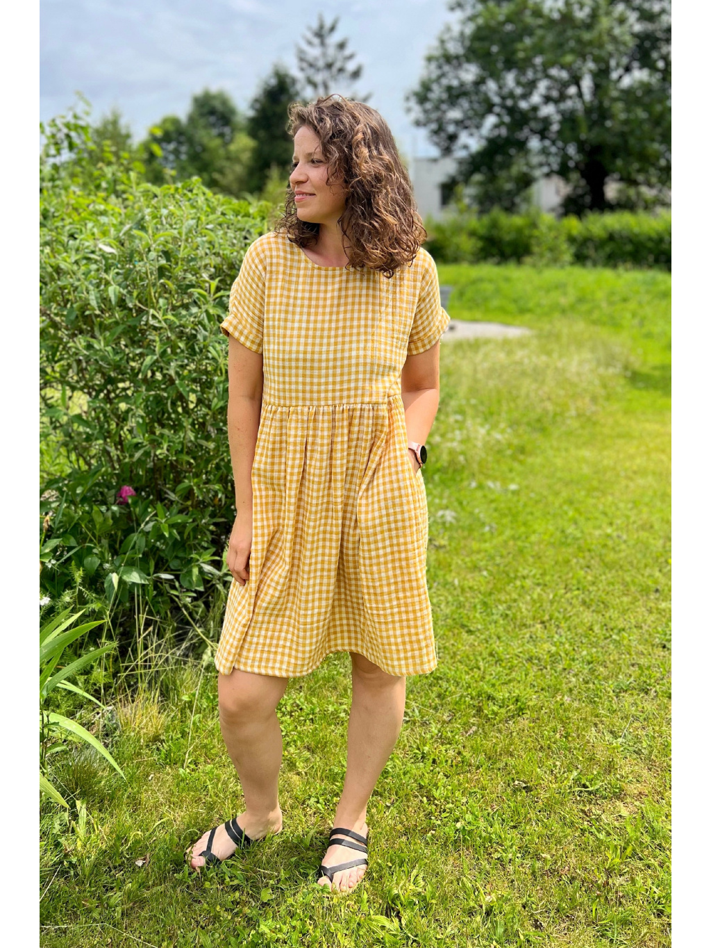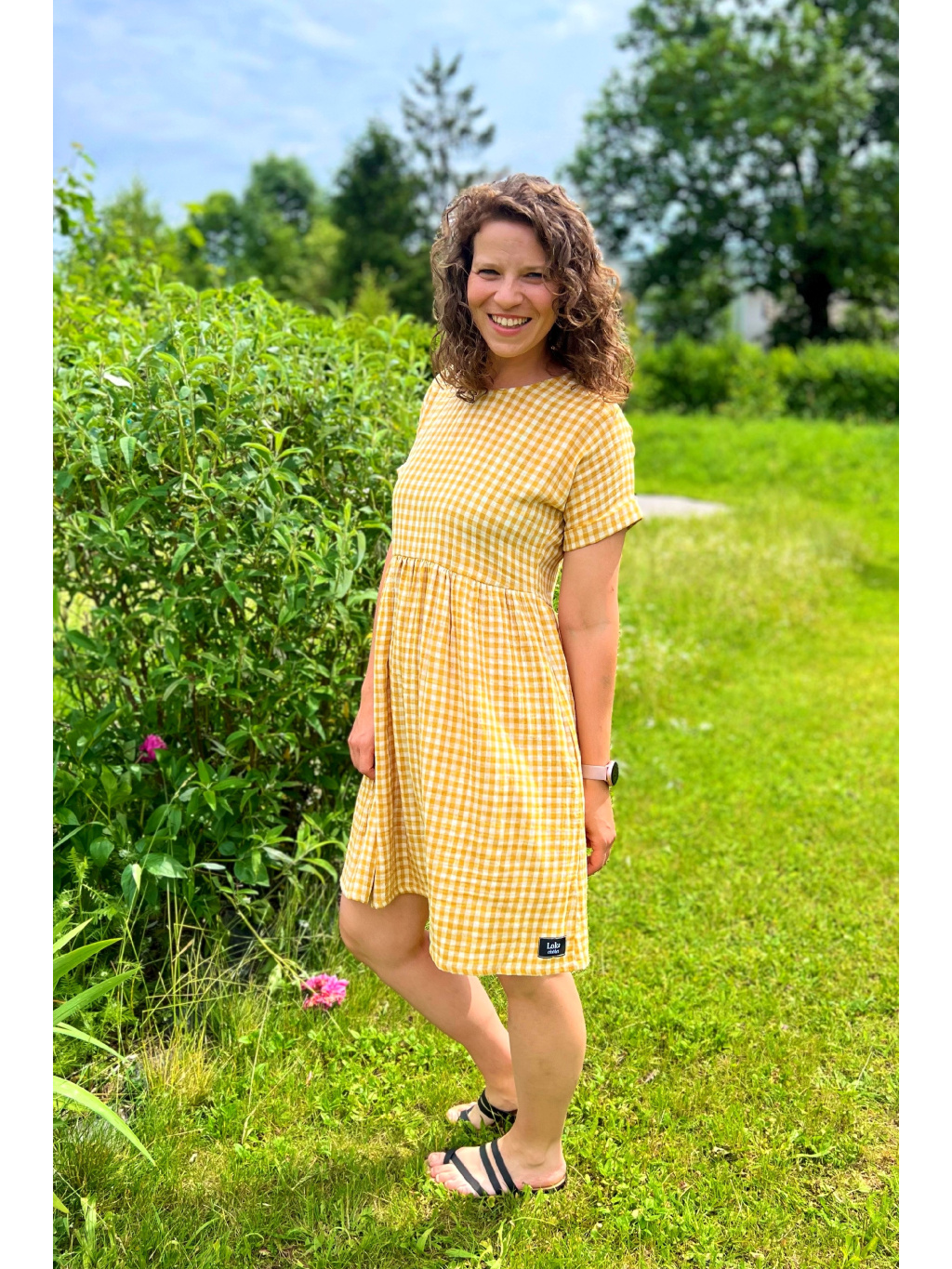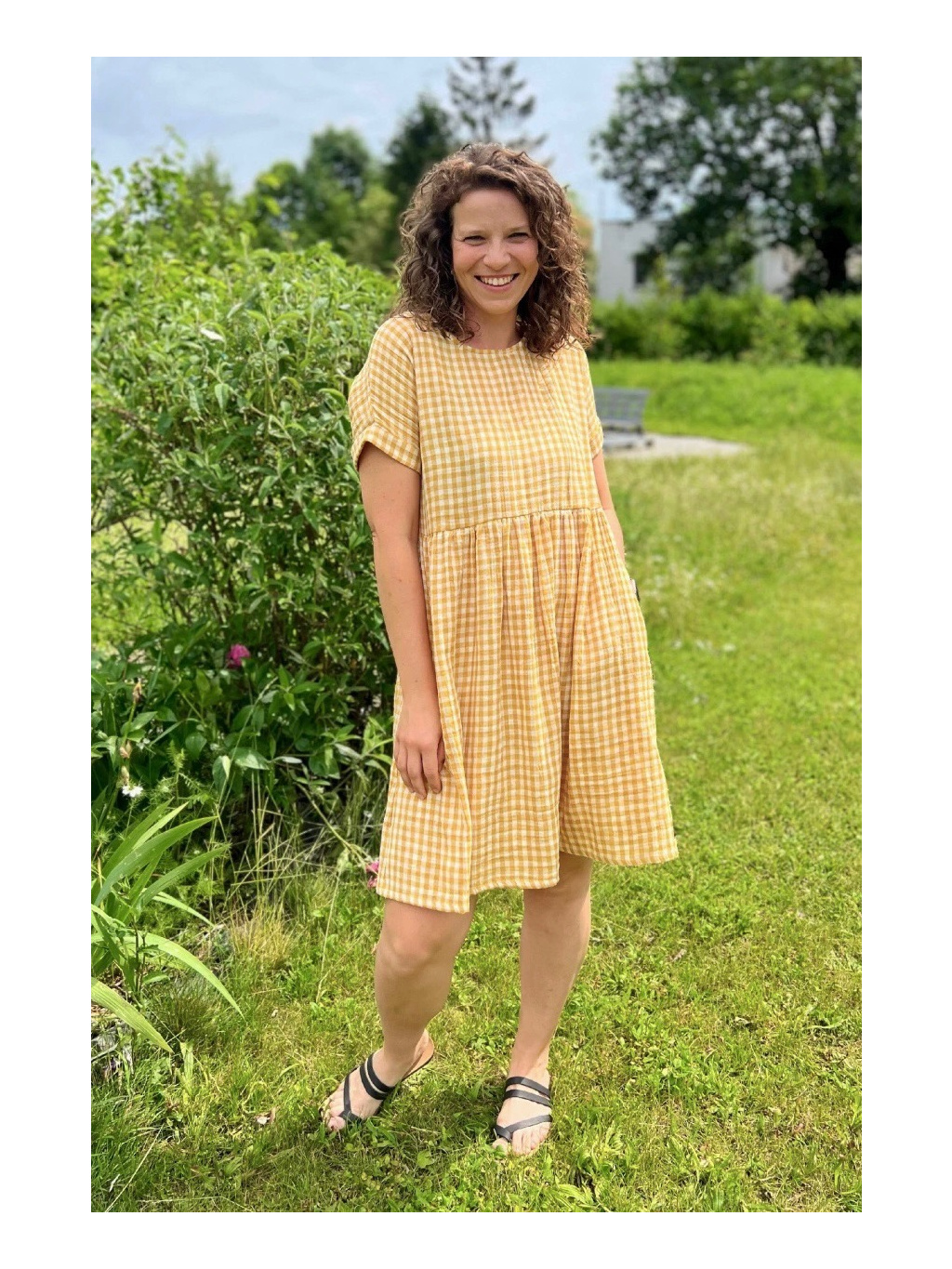 Šaty šijeme převážně na objednávku – zodpovědně, bez zbytečných zásob a plýtvání materiálem. Věříme v pomalou módu, která dává smysl. Pokud vaše velikost není skladem, objednejte si ji a my vám šaty ušijeme do 14 dnů.