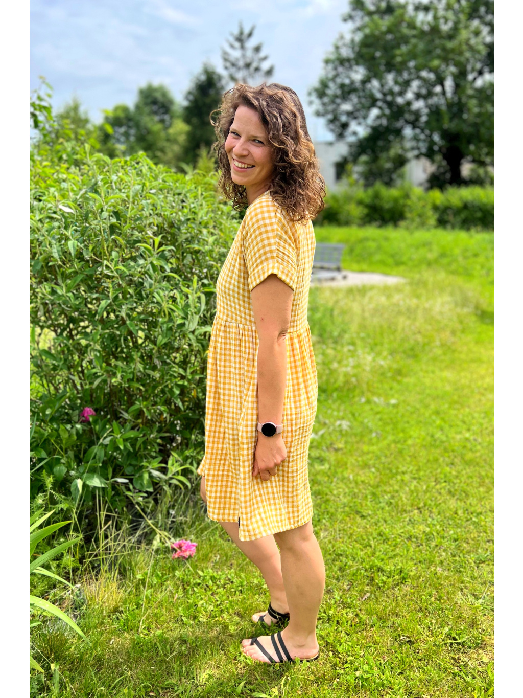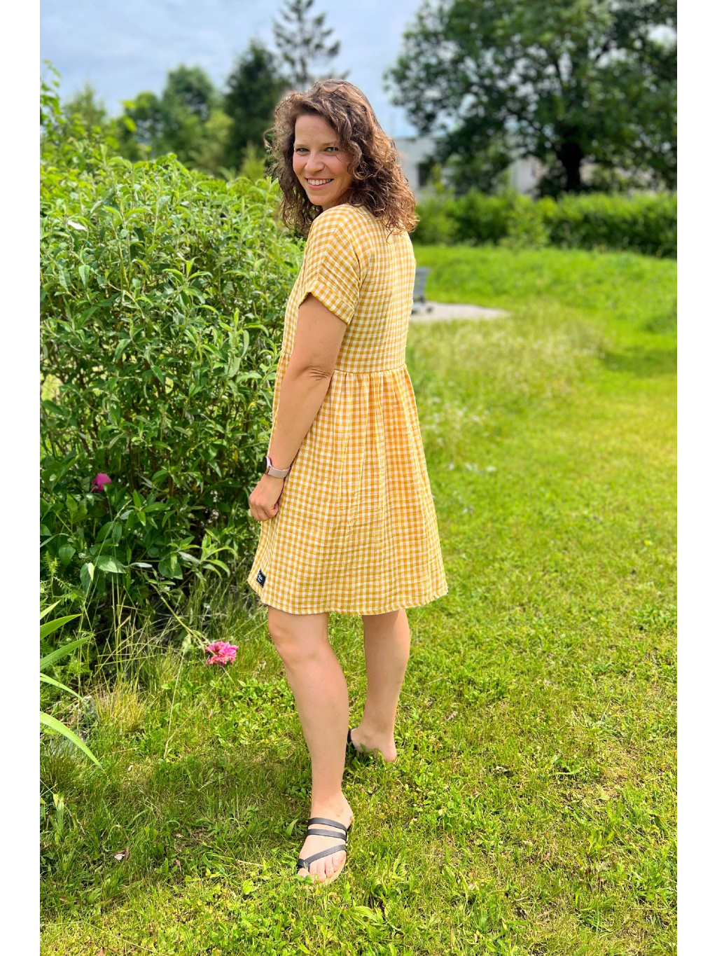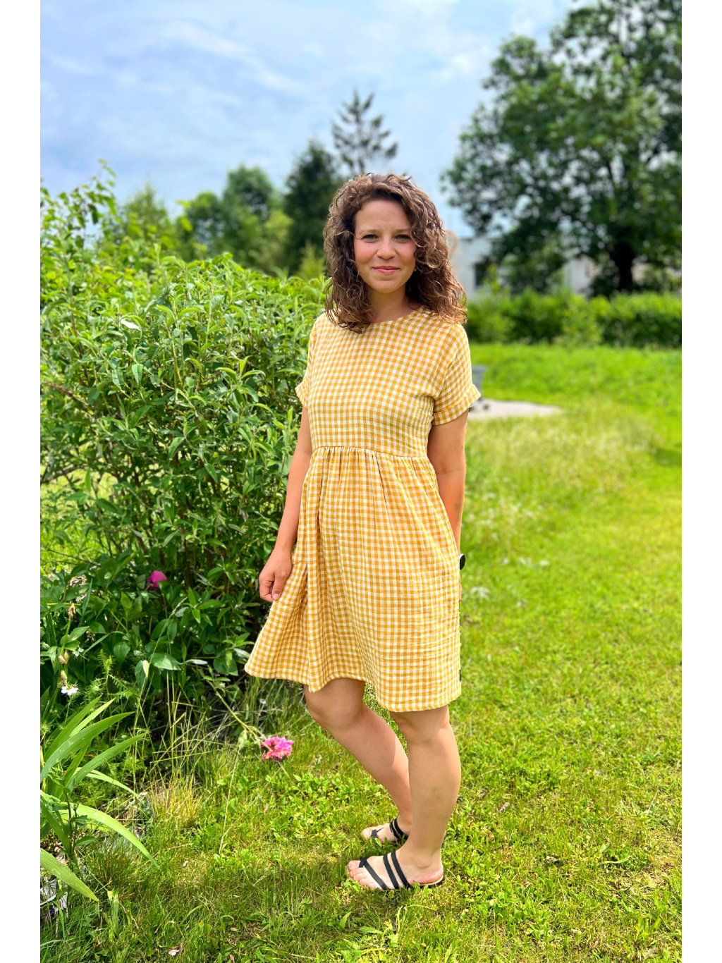 Šaty šijeme převážně na objednávku – zodpovědně, bez zbytečných zásob a plýtvání materiálem. Věříme v pomalou módu, která dává smysl. Pokud vaše velikost není skladem, objednejte si ji a my vám šaty ušijeme do 14 dnů.