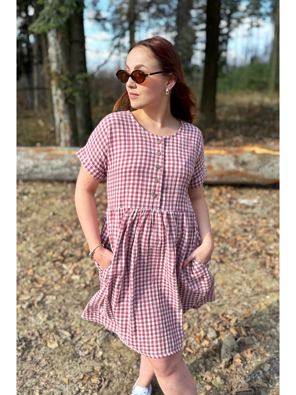 Jsou ušity z mušelínu, který je lehký, prodyšný a velmi příjemný na nošení. Díky pohodlnému střihu a praktickým bočním kapsám jsou ideální pro každodenní nošení.