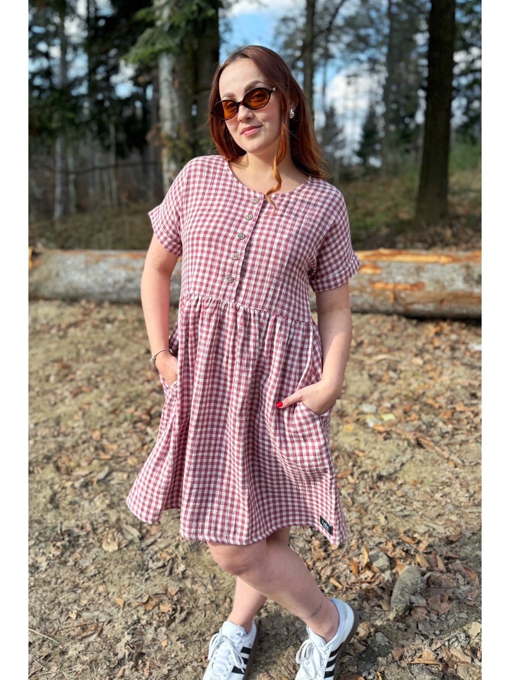 Pásek není automatickou součástí šatů, ale je možné jej k šatům ušít. Pokud si přejete k šatům pásek, zvolte v nabídce šaty s knoflíčky a páskem nebo šaty bez knoflíčků a s páskem. Do poznámky k objednávce napište velikost šatů a délku rukávů, kterou si přejete (krátký nebo 3/4).