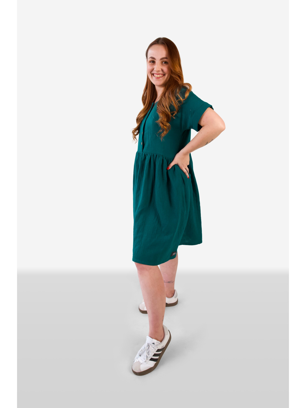 Šaty šijeme převážně na objednávku – zodpovědně, bez zbytečných zásob a plýtvání materiálem. Věříme v pomalou módu, která dává smysl. Pokud vaše velikost není skladem, objednejte si ji a my vám šaty ušijeme do 14 dnů.