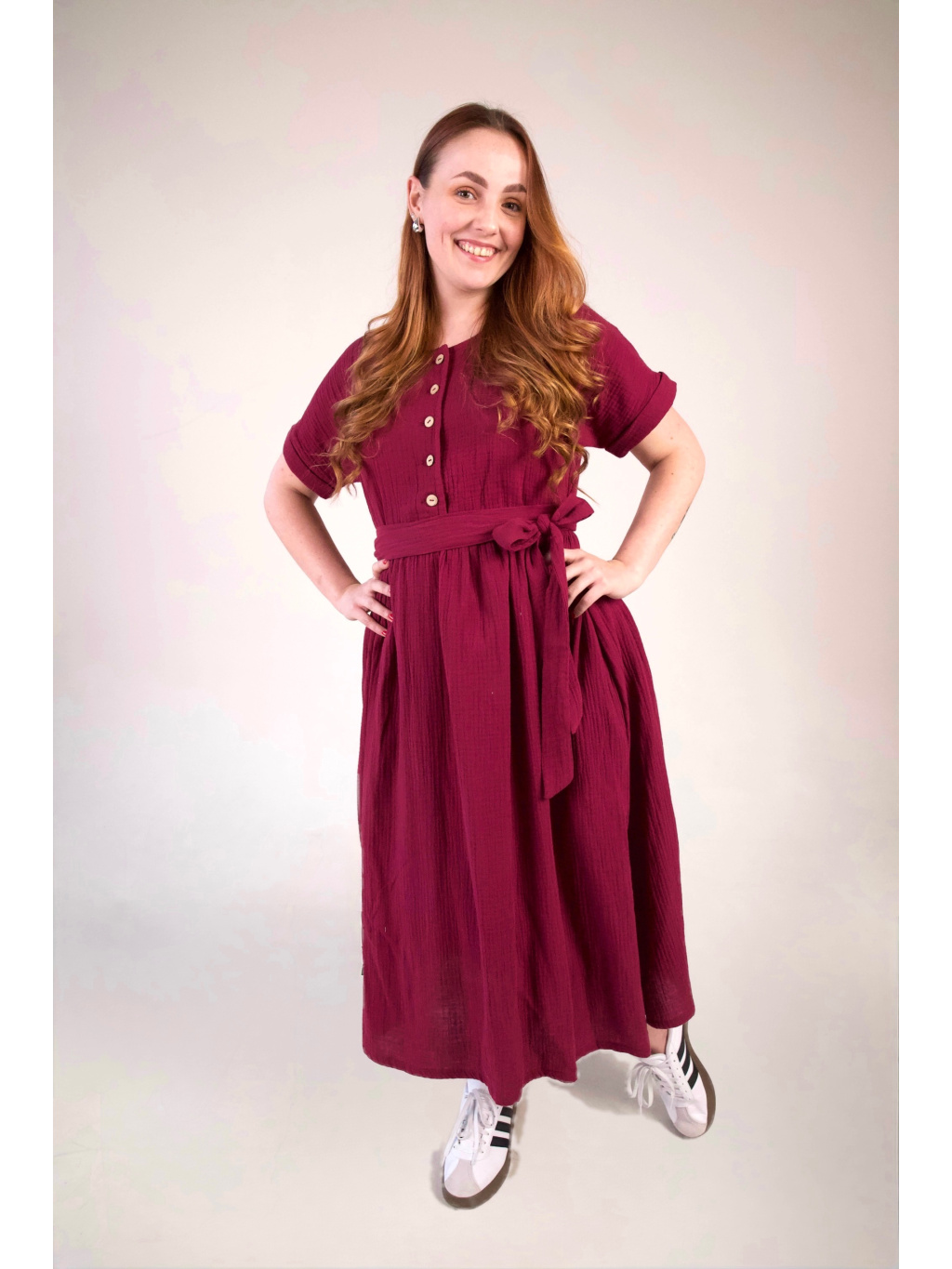 Mušelínové šaty Adele - jedny šaty, dva způsoby nošení – bez pásku působí volně a vzdušně, s páskem získají elegantnější vzhled a zvýrazní siluetu.