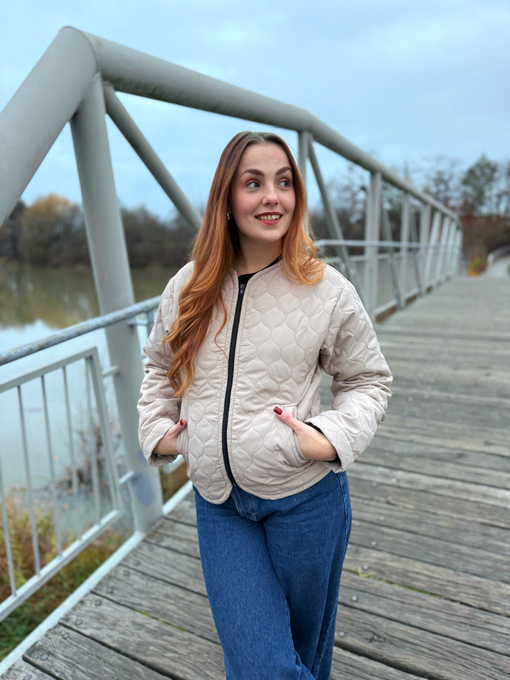 Přechodová bunda Evelyn je lehká prošívaná bunda, která se skvěle kombinuje i vrství a hodí se do proměnlivých dnů.