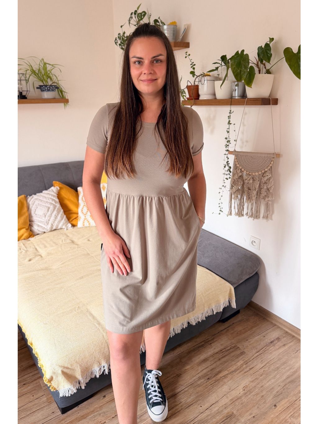 Šaty Anastázie se rychle staly oblíbeným kouskem. Jejich velkou předností je především pohodlí a příjemná volnost. Tyto šaty Vám budou skvělým parťákem po celý rok. Jako u většiny našich šatů jsme nezapomněli ani na oblíbené kapsy, které jsme pečlivě podšily plátnem, a tak hezky drží tvar.