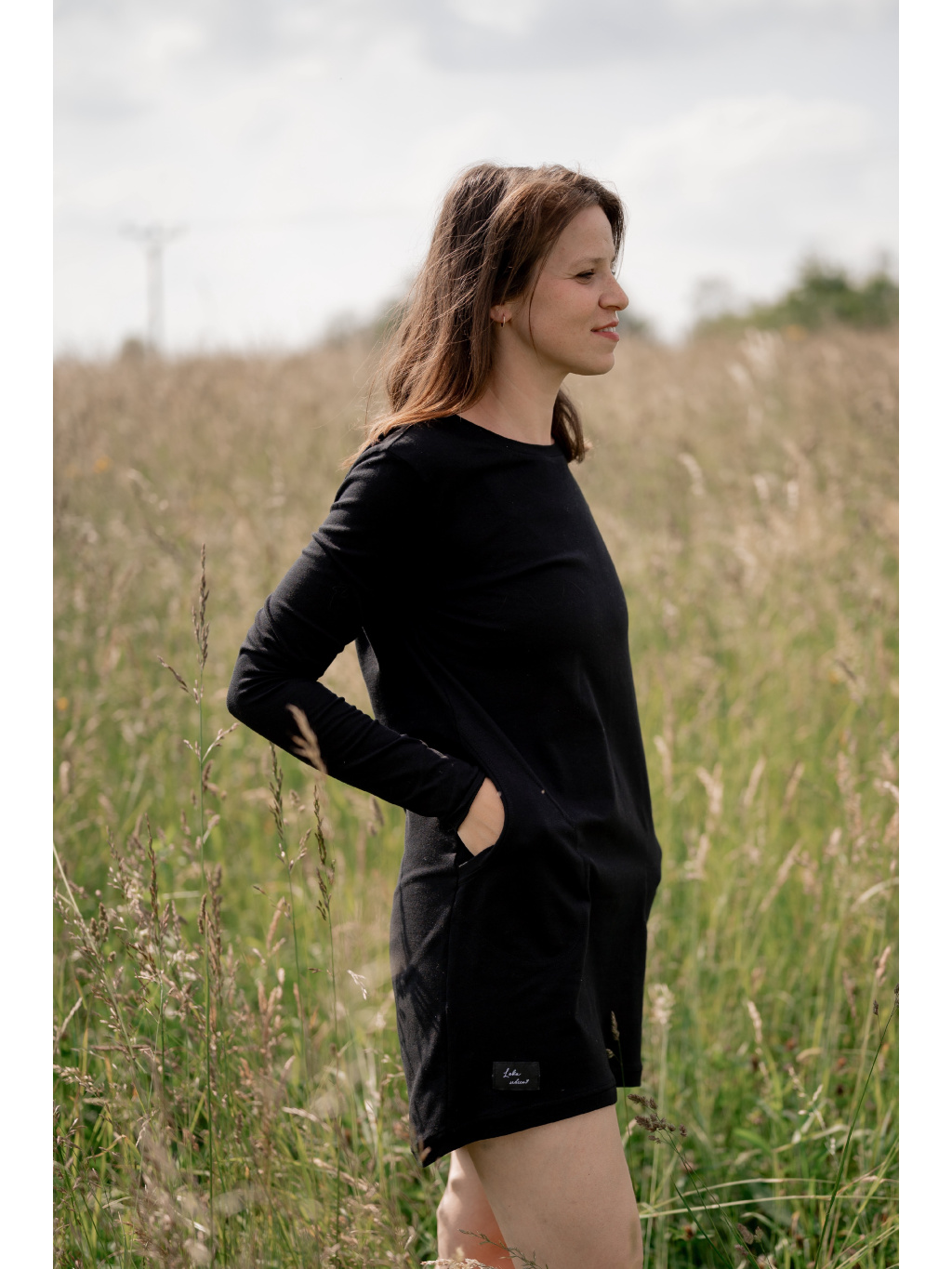 Máme poslední kus těchto šatů za zvýhodněnou cenu. Šaty mají pohodlný střih – vpředu jsou kratší, vzadu delší – a po stranách praktické kapsy. Skvěle se hodí k legínám i džínům jako prodloužené tričko.