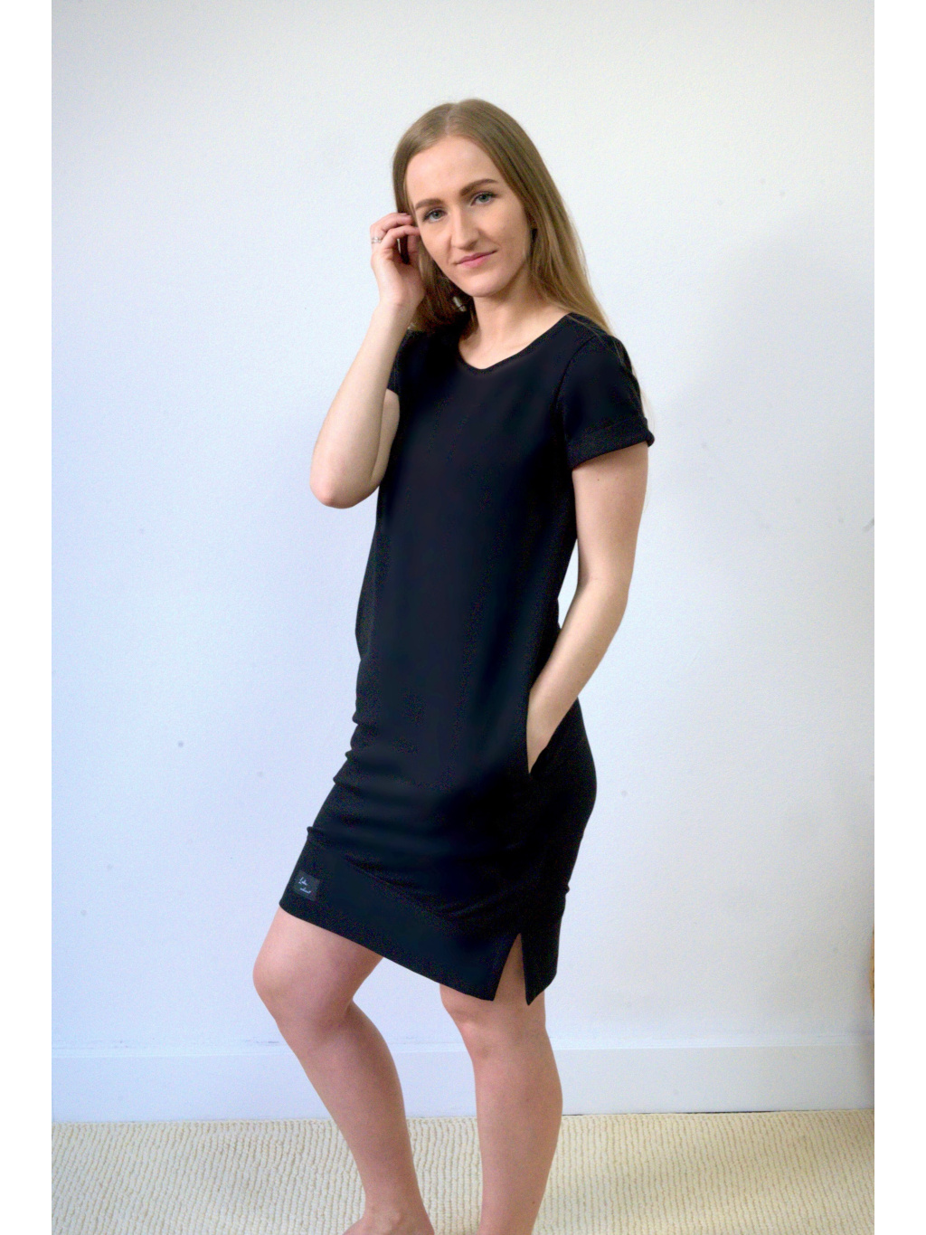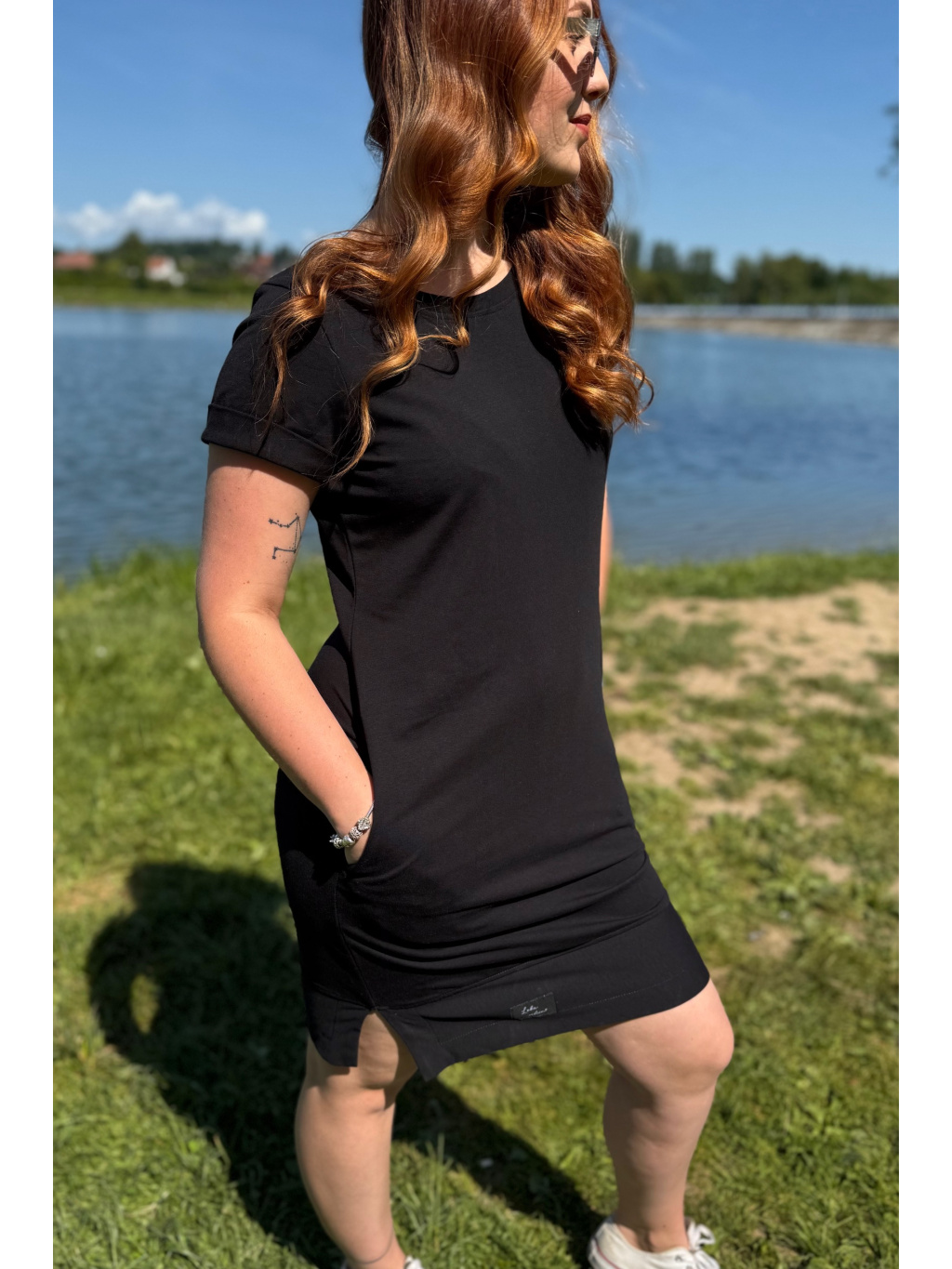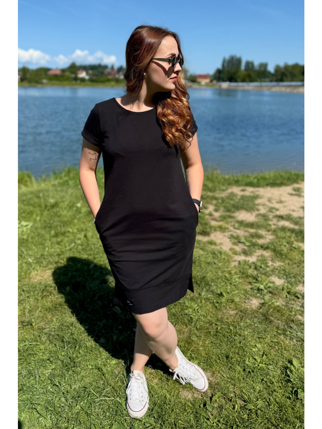 Minimalistické šaty z biobavlny s certifikací GOTS, ušité z jemné tenké teplákoviny, která je příjemná na těle. Díky rozparkům po stranách Vás nebudou omezovat v pohybu. Praktické kapsy a pohodlný střih z nich dělají univerzální šaty do města, na doma nebo třeba procházku.
