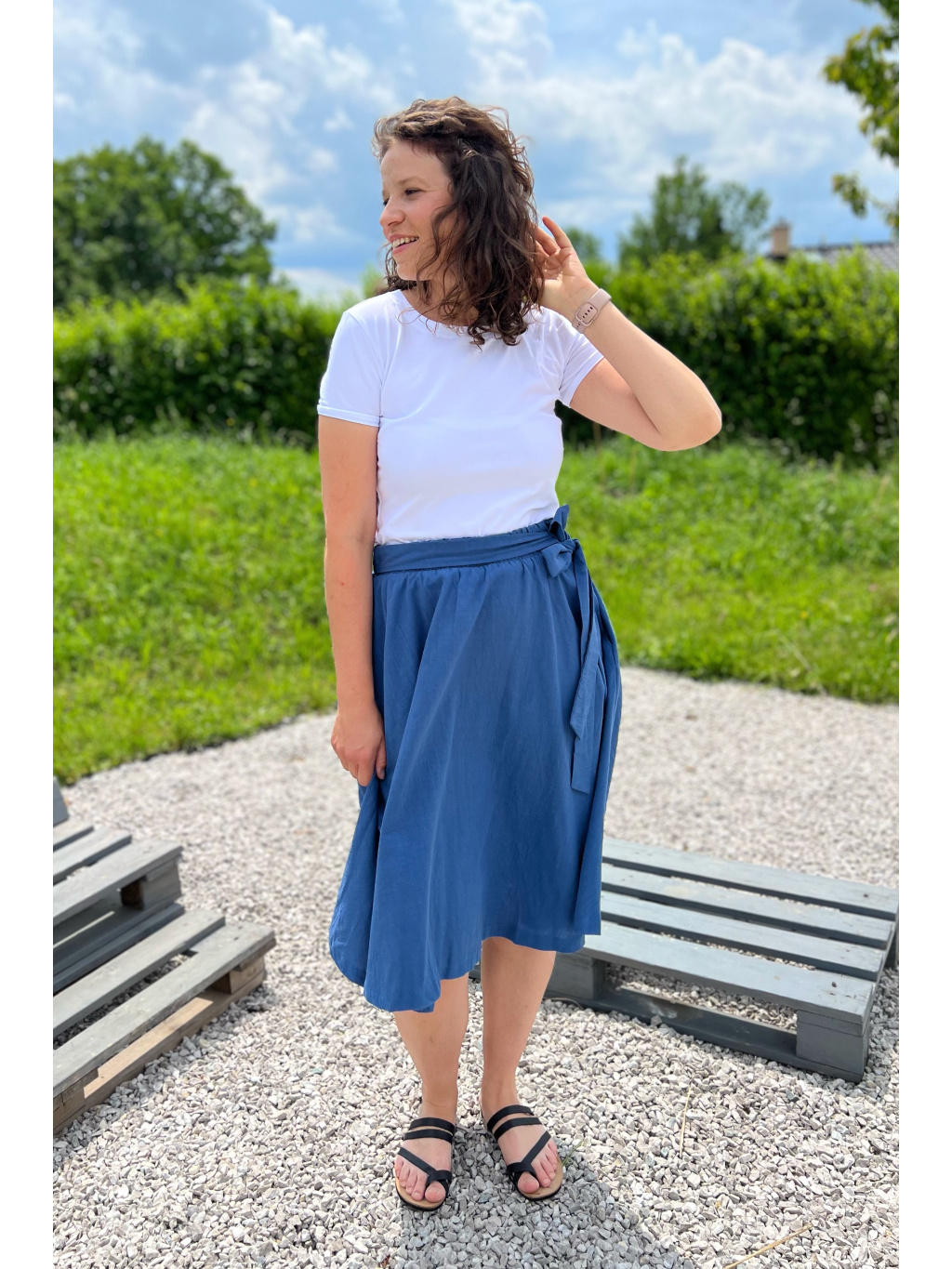 Naše nové sukně Athena jsou stvořeny pro léto! Ušili jsme je z lehoučkého a prodyšného materiálu – 80 % bavlna a 20 % len – který vás zahalí do pohodlí a zároveň nechá pokožku dýchat.