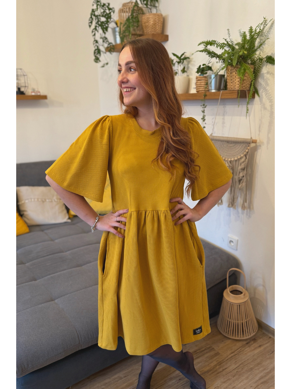 Šaty Bella jsou synonymem lehkosti a svobody. Zvonové rukávy se volně nesou s každým pohybem a dodávají šatům vzdušnost i přirozenou eleganci. Ať už jdete do práce, tvoříte, nebo trávíte den venku, budete se v nich cítit pohodlně a žensky.