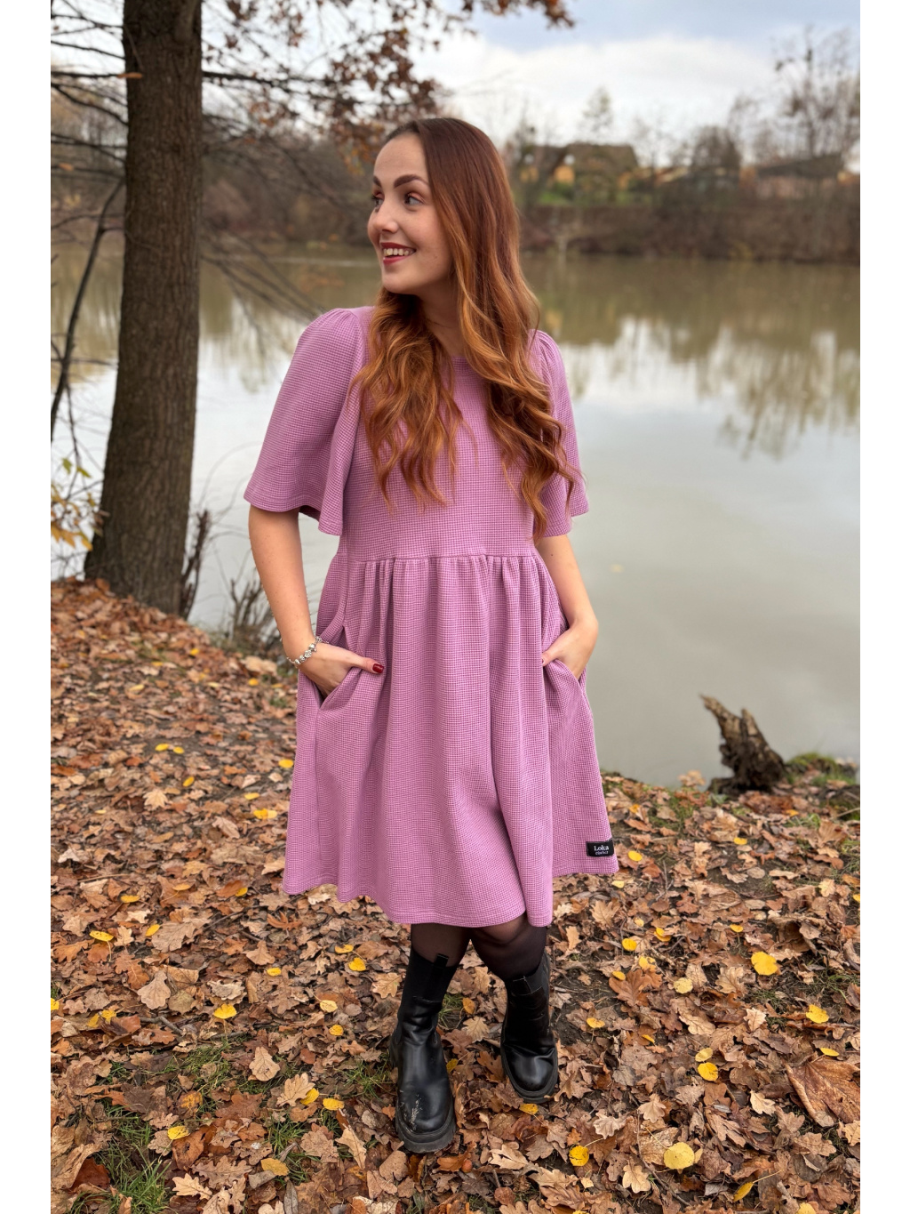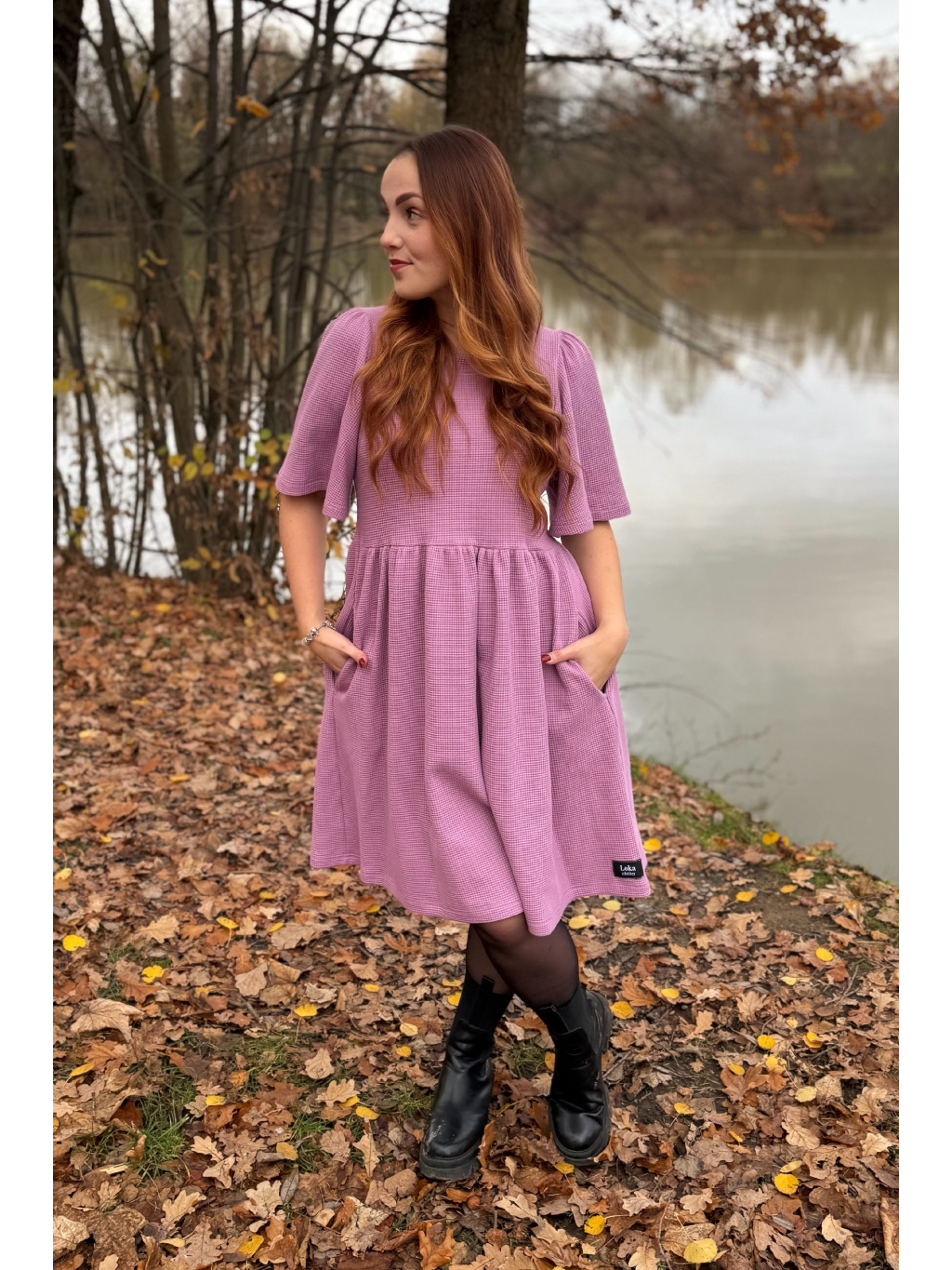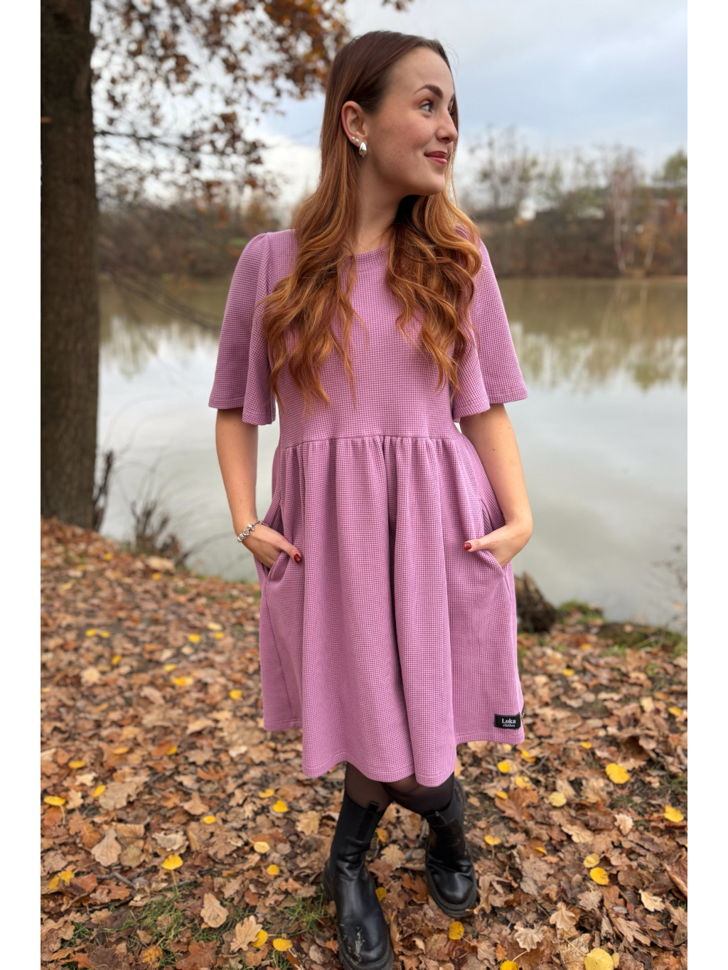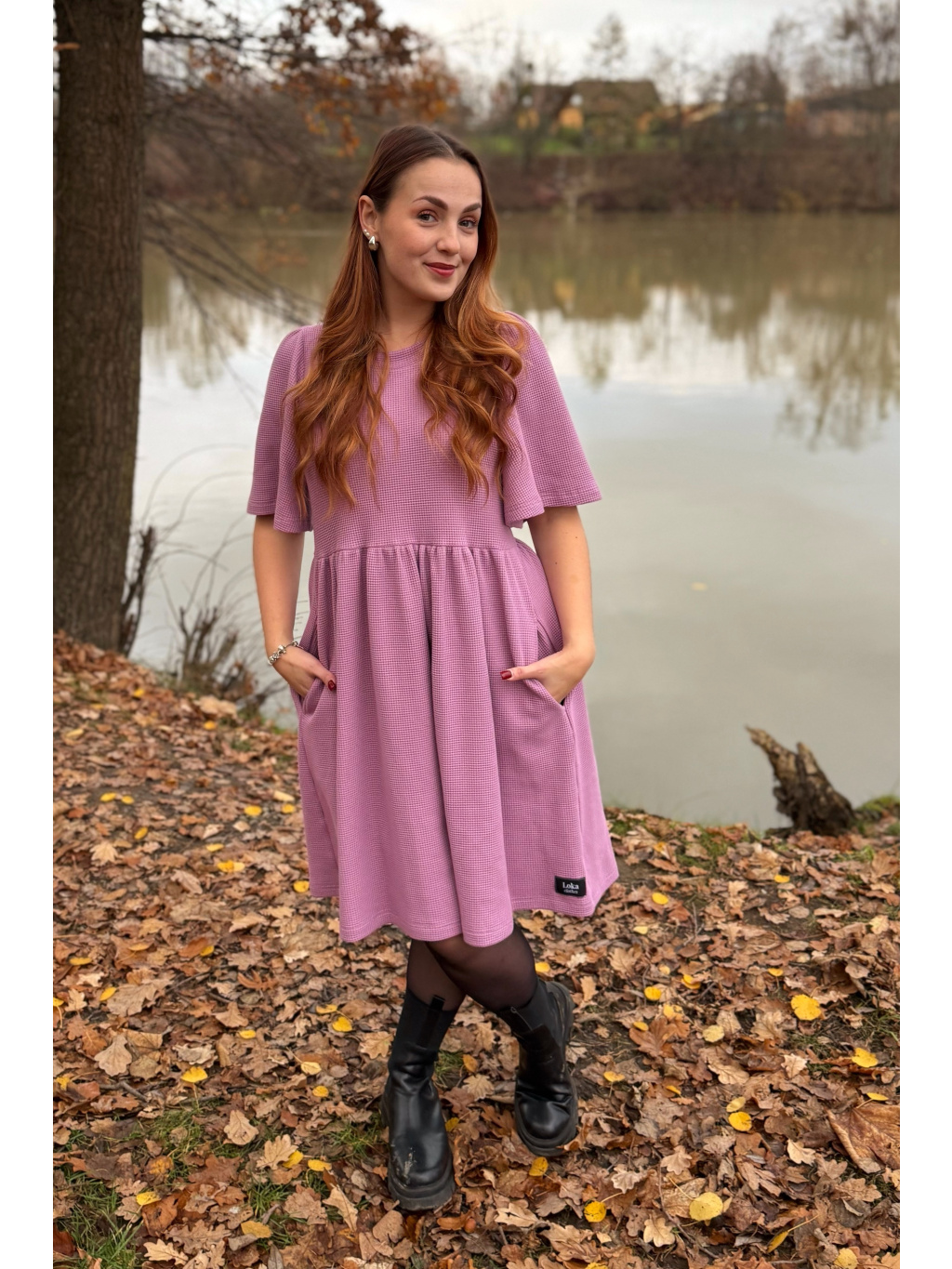 Šaty Vám na přání můžeme ušít také s propínáním (můžete vidět u vaflových šatů Anne ve vínové barvě).