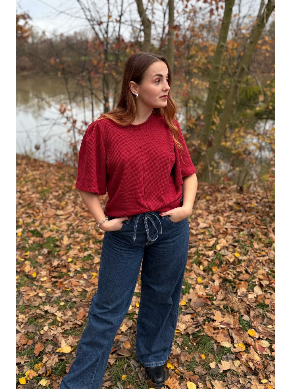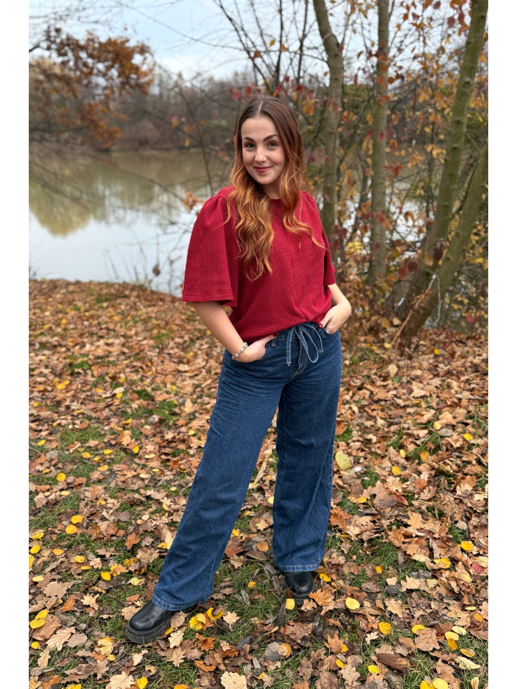 Originální propletení v přední části dole dodává topu zajímavý prvek, zatímco volnější rukávy přinášejí lehkost a uvolněnost. Snadno jej zkombinujete s džíny, kalhotami i sukní.