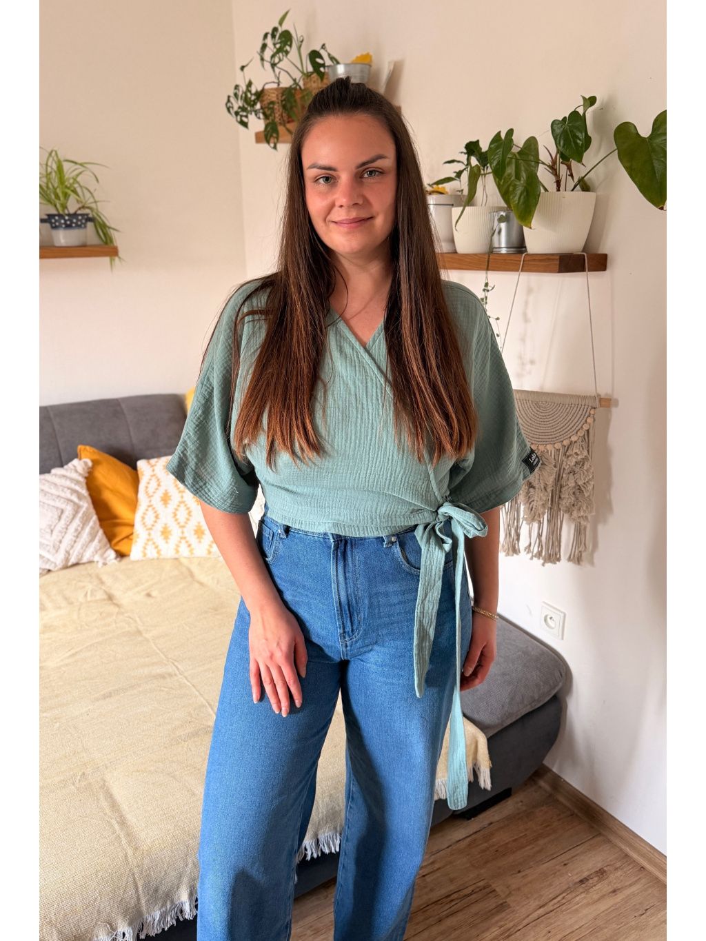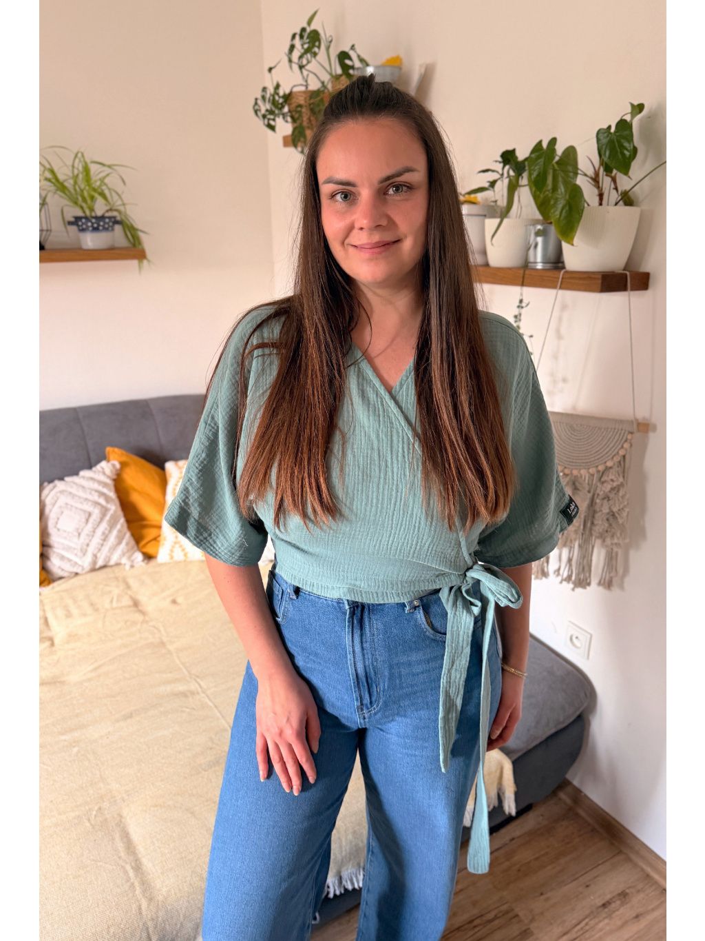 Zavinovací top z jemného mušelínu Enny je lehký jako pírko, vzdušný a naprosto ideální na teplé jarní a letní dny. Mušelín je úžasně příjemný na těle, rychle schne a krásně dýchá – zkrátka must-have pro letní šatník!